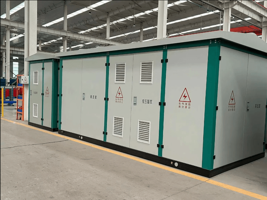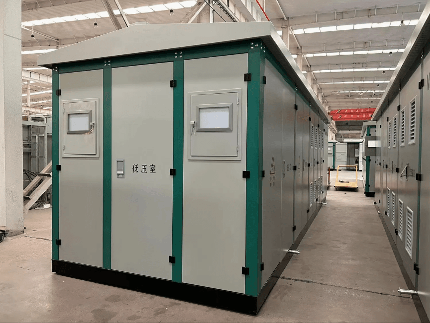 This substation normally comprises three compartments inside: High voltage compartment, (equiped with high/medium voltage switchgear , such as ring main unit , gas insulated switchgear ,its rated volatge can reach to 40.5kv maximum)Low voltage compartment ,Tranformer compartment (equipped with three phase oil immersed transformer or cast resin dry type transformer)